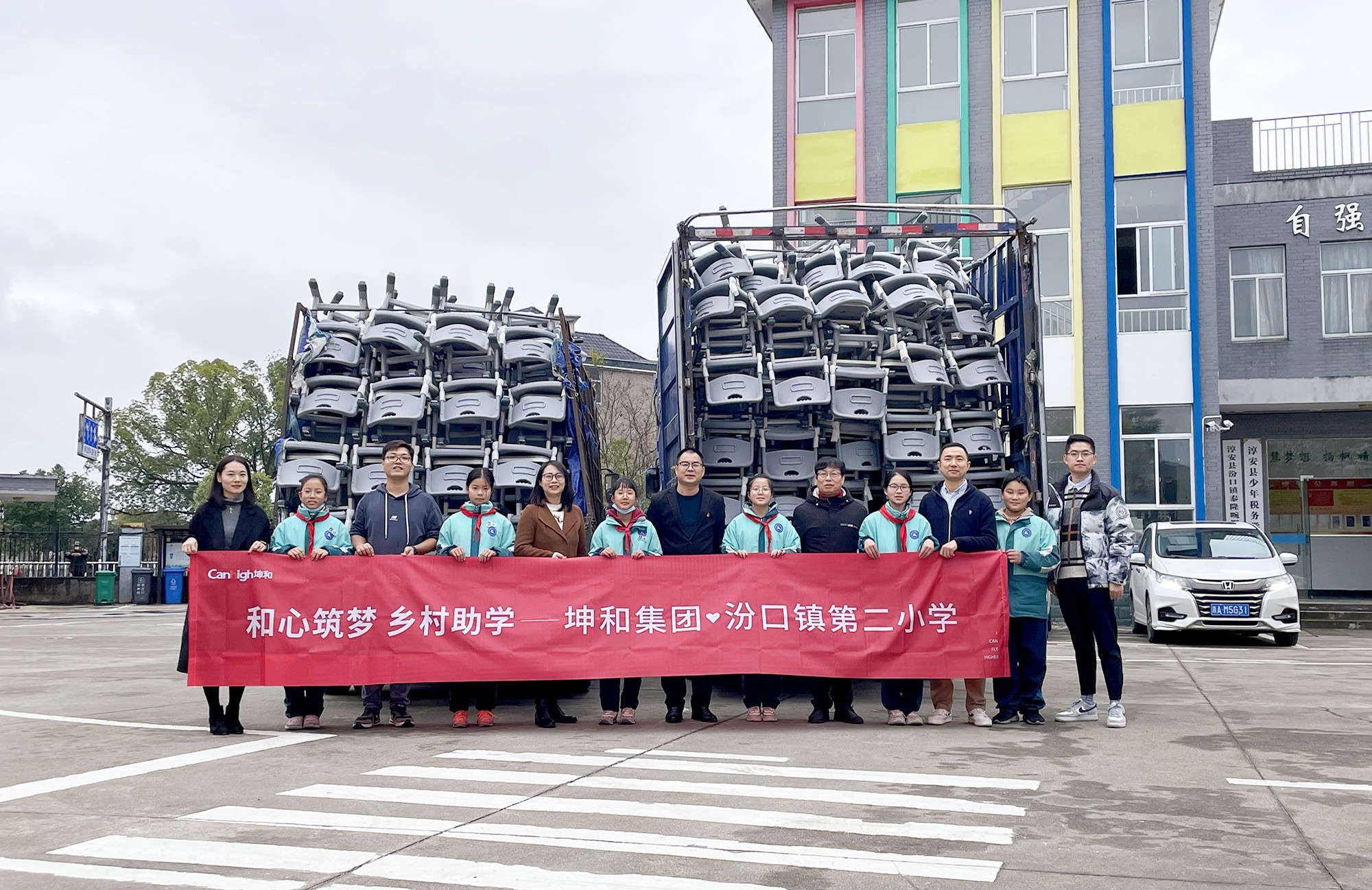 2022年12月9日,坤和集團向汾口二小捐贈了一批可調(diào)節(jié)式課桌椅、書柜、講臺等教學物資。